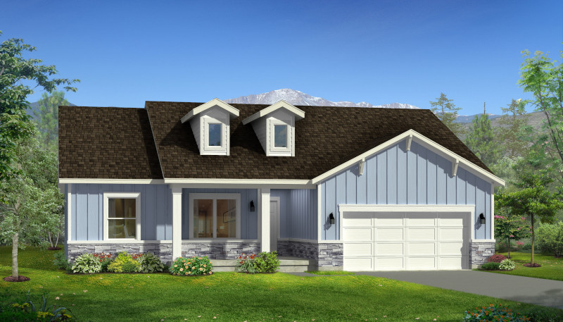 The Raleigh home plan is a three bedroom, two bath rambler that features a large laundry room on the main floor, walk-in pantry, open Entry and Family/Great Room, and a spacious walk-in closet in the master suite. The tandem 3rd car garage is large enough to store a boat or ATVs.