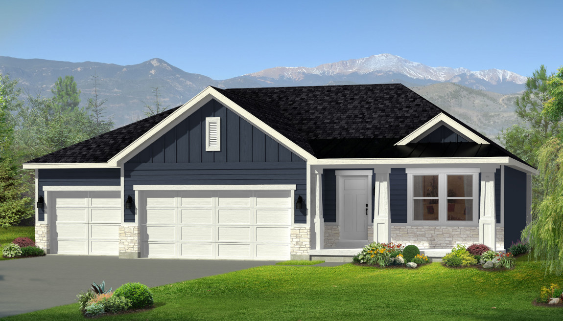Newly designed, this open, vaulted Whistler home plan is designed to entertain. With tons of natural light from the 10' vaulted front dormer, incredible open floor plan for spacious living, and a standard 3-Car Garage, this home has everything one level living boasts of. Also enjoy private porch access from the Master Bedroom.